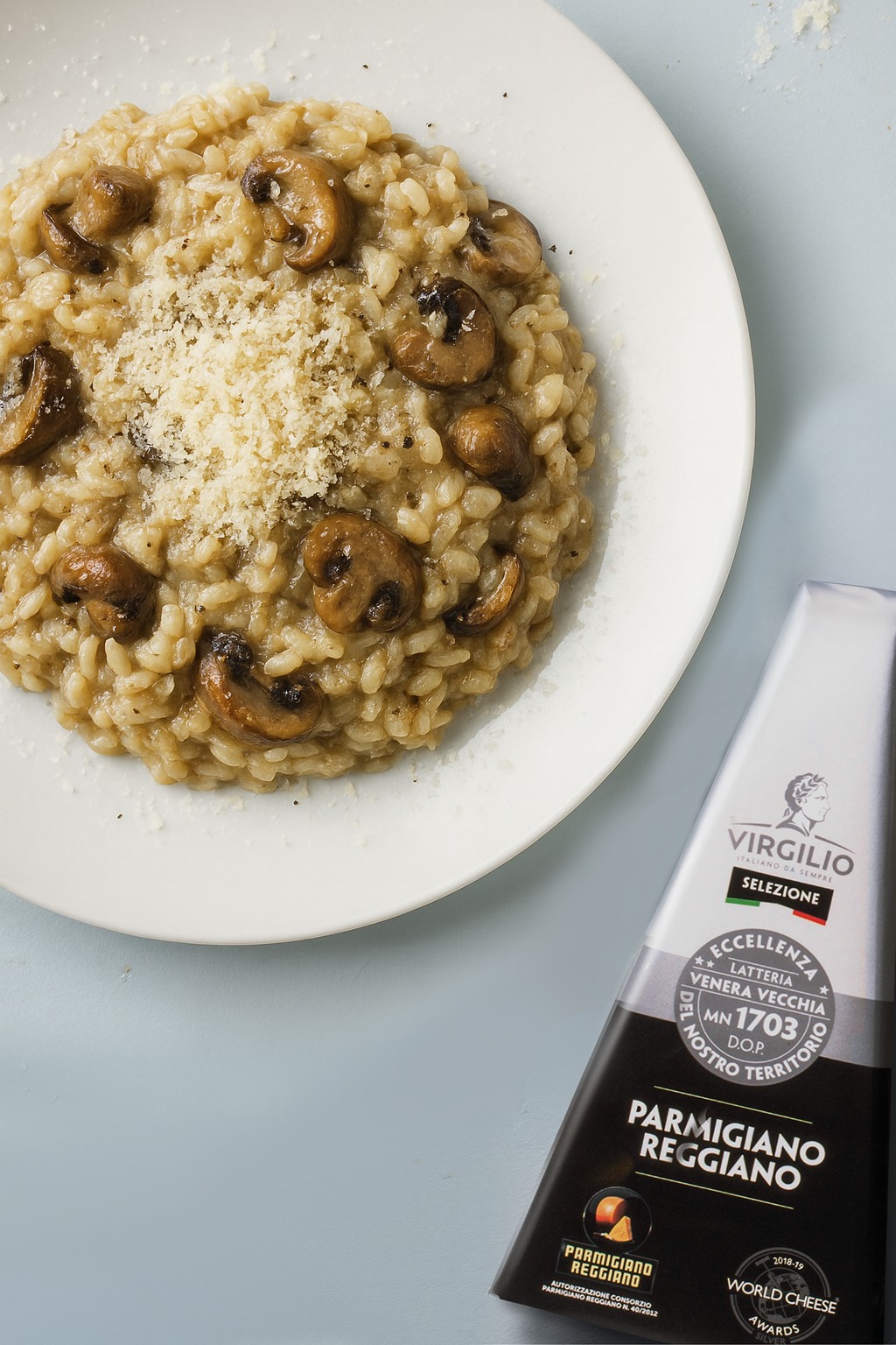 A cottura ultimata, mantecare con il burro rimasto e il Parmigiano Reggiano Virgilio, fino a ottenere una consistenza cremosa e avvolgente. Completare con una spolverata di Parmigiano e una macinata di pepe fresco.